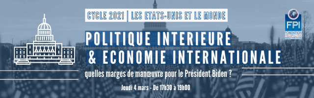 CYCLE 2021 – Les Etats-Unis et le monde S’INSCRIRE ICI Le webinaire du 4 mars s’attachera aux dossiers économiques sur lesquels Joe Biden doit trancher dans les semaines à